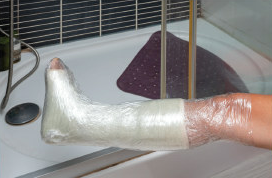 • Alternatively, double-wrap the cast in plastic bags and secure with waterproof tape (such as duct tape)